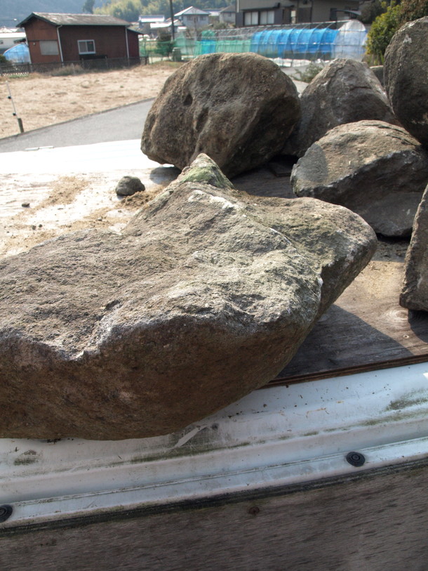 今現在持ち帰った石の量では業務用の窯を作るには到底足りませんが、つい先日、廃業した庭石屋さんを見つけてきて、持って帰っていいという話を取り付けた次第です。