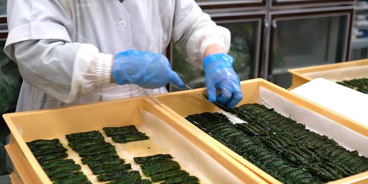現在、様々なものが機械化されていく中で、焼きしそ巻きは時代に逆行して全ての工程を手作業で製造しております。それでもこの20年もの間、従業員を減らすことなくむしろ人を増やし続け現在4つの工場で170名程で頑張って焼きしそ巻きを製造しておりました。