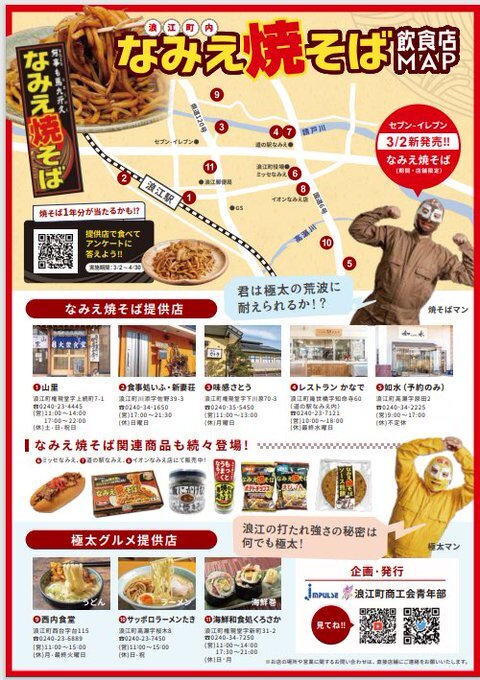 地域の魅力と元気を発信並びに町民の交流の場と考えており、毎年「なみえ焼そば」によるお祭りを今回より継続していきたいと思います。また、「なみえ焼そば」による持続可能な地域をつくるために、2017年の避難地域一部解除により、浪江町内の飲食店の再開や新規開店が増えてきたため、2020年には浪江町内なみえ焼そば飲食店MAPを制作・配布しました。
