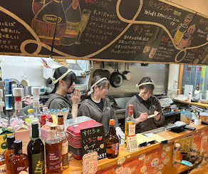 ガラス酒器(約140ml)1杯に焼き鳥2本もしくはおつまみ(160円~350円相当)を自由に選べます!