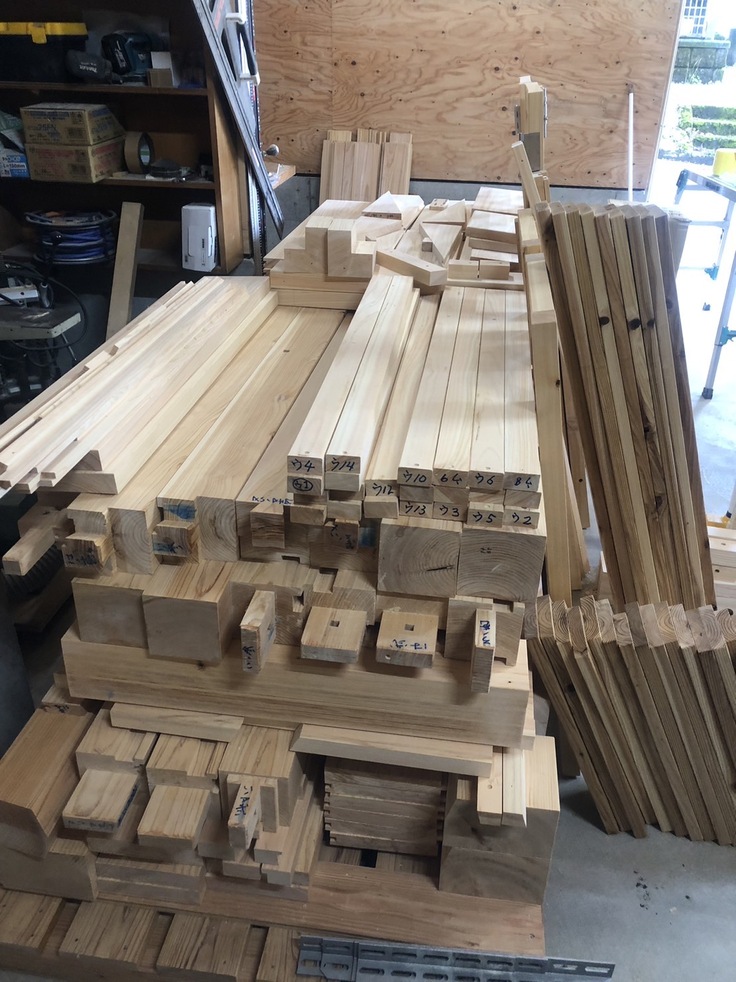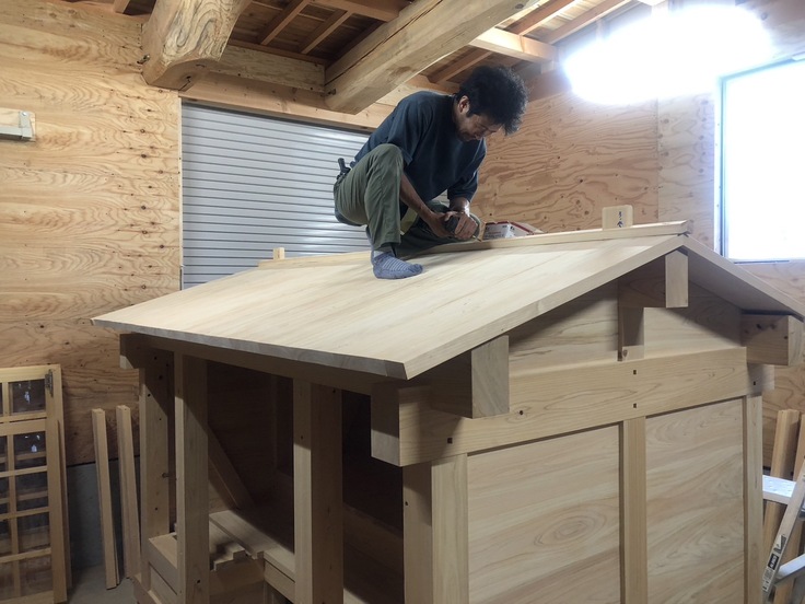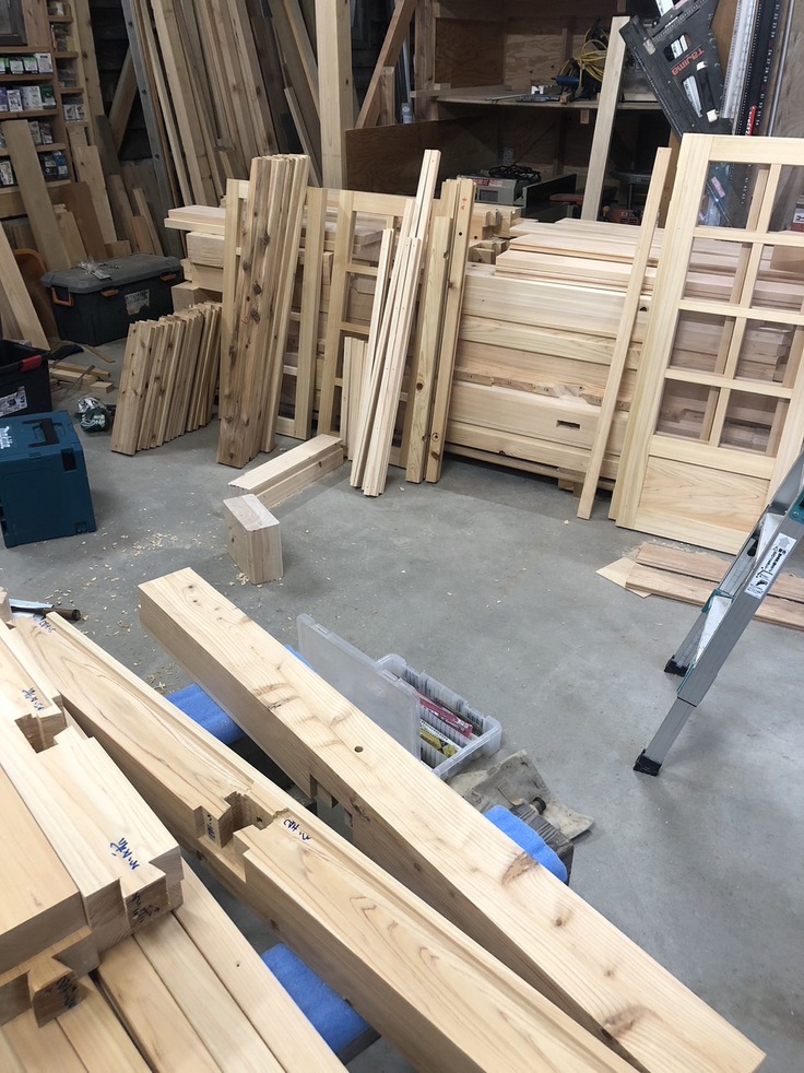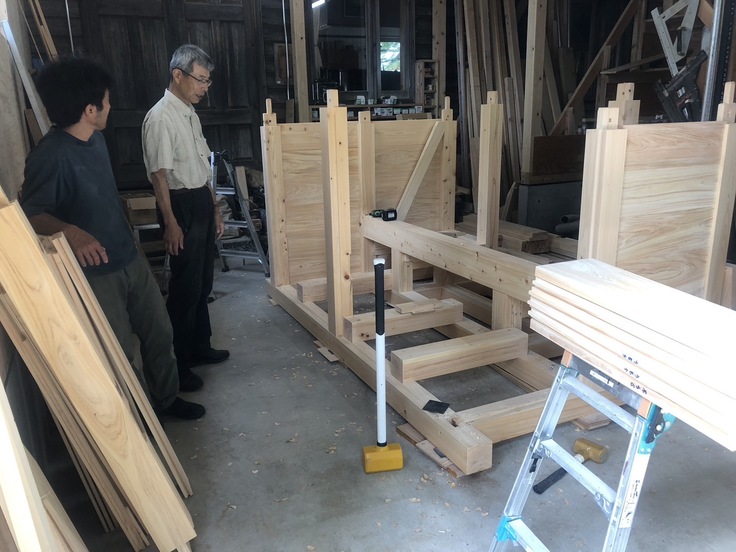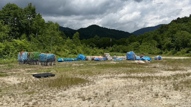 一度組み立てたものを解体するのは、素人目にはもったいないように感じますが、棟梁の「木は生き物」という言葉に感銘を受けました。組み立てた状態で木を落ち着かせることが大事だそうです。 解体された木材は丁寧に梱包されたのち、折立ヘリポートに運ばれます。ヘリのフライトに関しましては天任せ。これからは空とのにらめっこの始まりです。