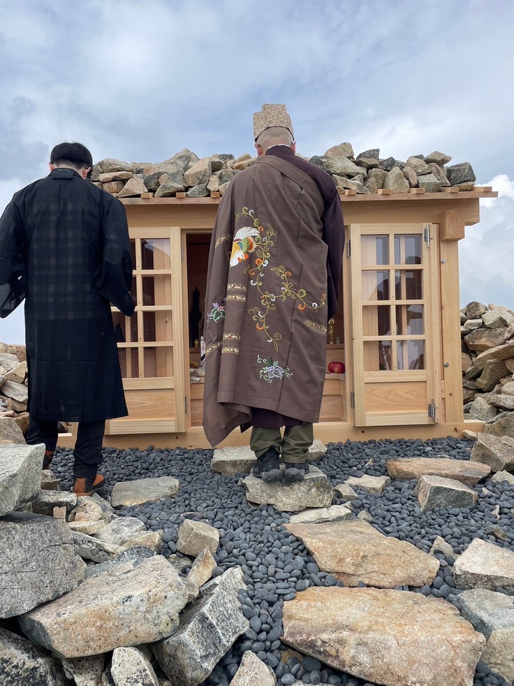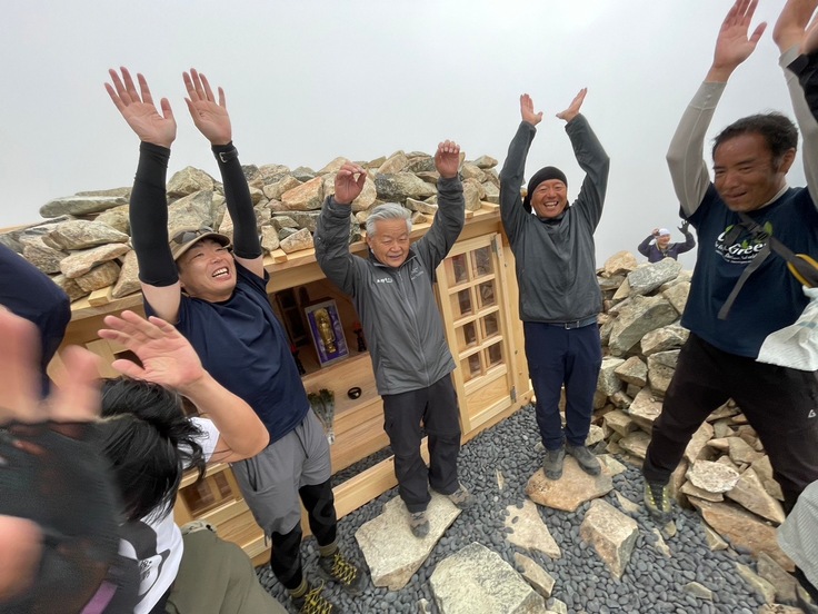 当初7月8日に予定されていた落慶法要が、悪天候が予想されたため、前倒して7日となり、大川寺住職さんにも山頂まで足をお運びいただき、滞りなく執り行われました。皆様に支えられて、皆様の思いの詰まった薬師堂は素敵な祠に生まれ変わりました。心より感謝申し上げます。