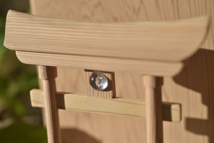 ◉本商品のもう一つの特徴は神域への入り口を示す鳥居を再現した造りと、浄化の石として知られる開運・招福を祈念した「水晶」を鳥居部分に配した事です。