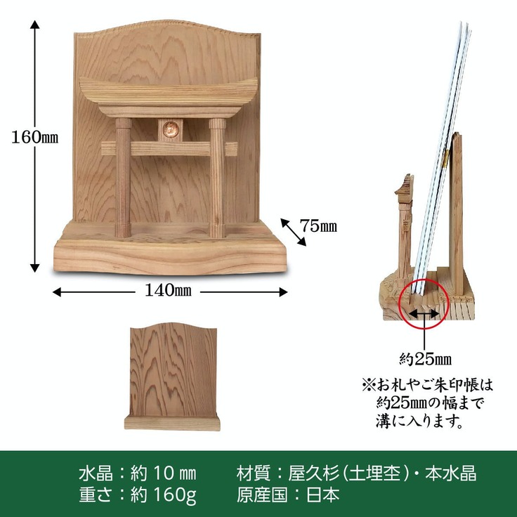 ●お札・御朱印立て:縦16㎝×横14㎝×奥行7.5㎝