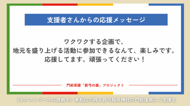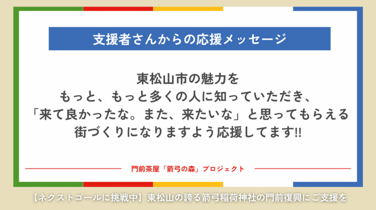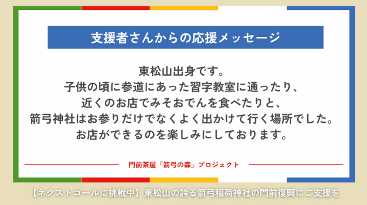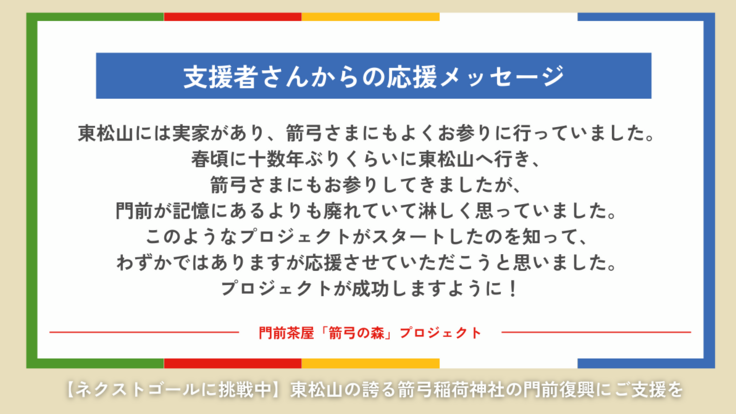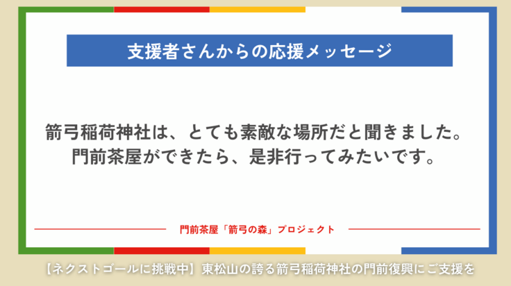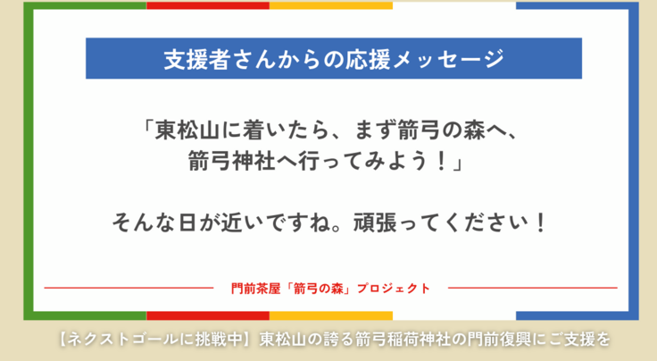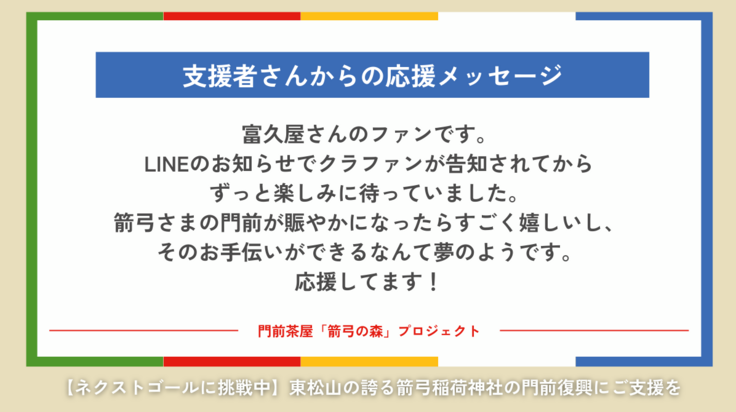 【ご支援を頂いた方々からの応援メッセージ】ありがとうございます。