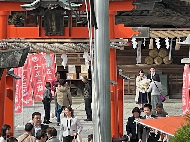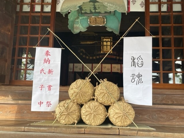 11月23日新嘗祭が斎行されました。初穂の御奉納された米俵が本殿正面に置かれ、古き良き古の趣のある祭典でした。また、祭日と言う事もあり沢山の七五三を祝うご家族の姿も見え、走り回るお子さんたちに笑顔があふれていました。