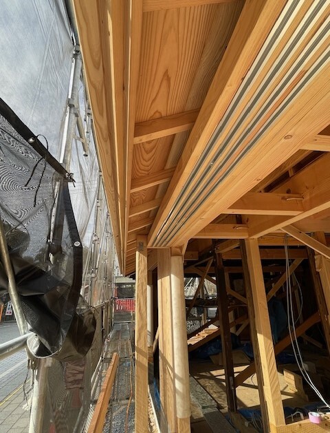 門前茶屋 箭弓の森の店舗の進捗具合もここのところ小春日和に恵まれ着々と進んでおります。