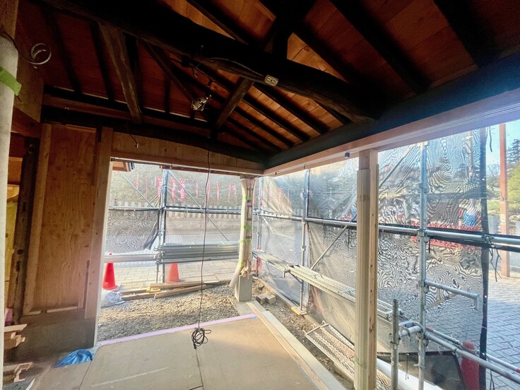 さて、門前茶屋「箭弓の森」のオープンですが、ウクライナ問題等ウッドショックなどによる建築資材の不足があり、その影響を受け、資材の納期の遅れや工事との兼ね合いに中、予定していたスケジュール調整も難航、加えて古い建物のリノベーションとあって建築確認等の遅れも重なり2月9日のオープン予定が現状のところ、ひと月遅れの3月上旬になる予定です。