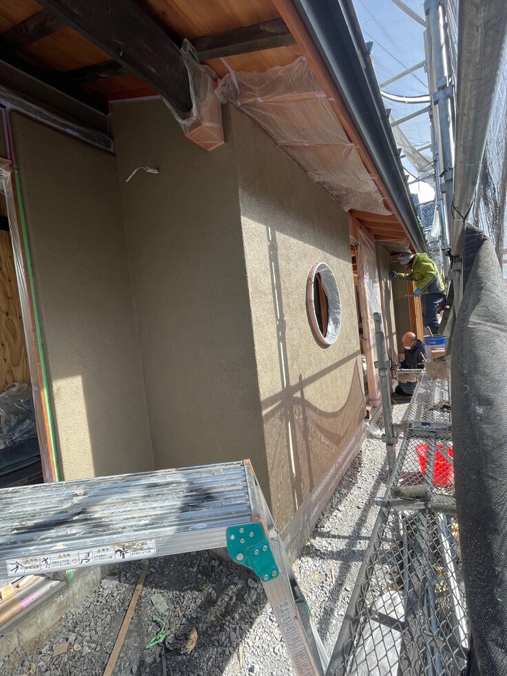 今日は日曜日ですが左官の職人さんは頑張って仕上げていて、有難い限りです。
