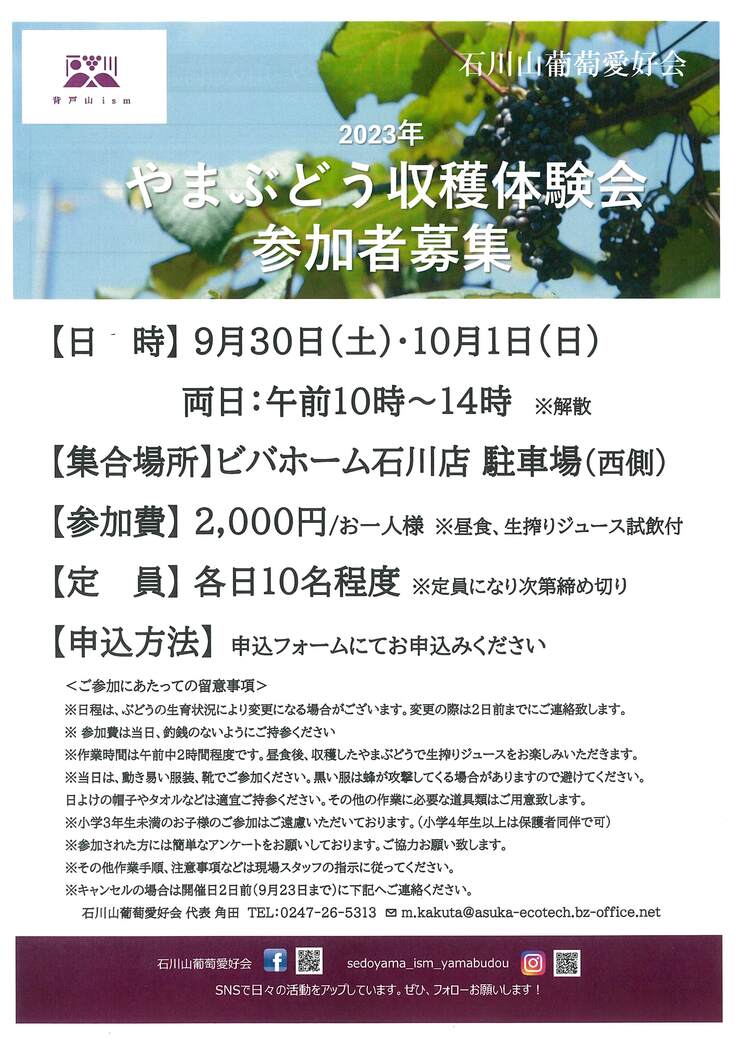 今年は初めて山ぶどうの収穫体験会を企画いたします。