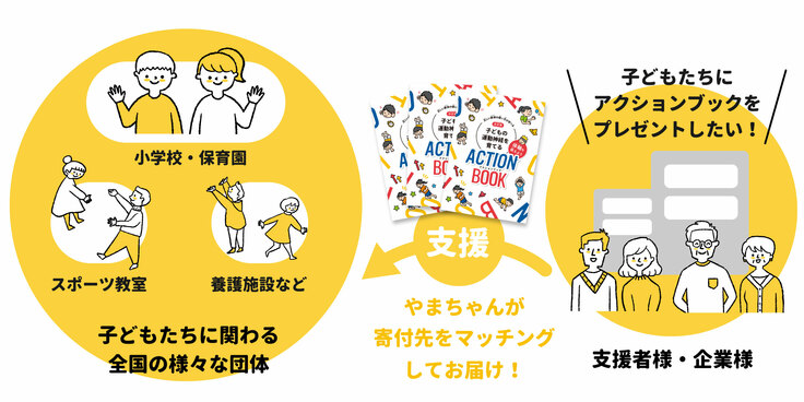 コロナ禍でなかなか思いっきり身体を動かせなくて運動不足になっている全国のこどもたちに、是非とも「アクションブック」を活用してもらえたらと思い立ち上げたこのプロジェクト。