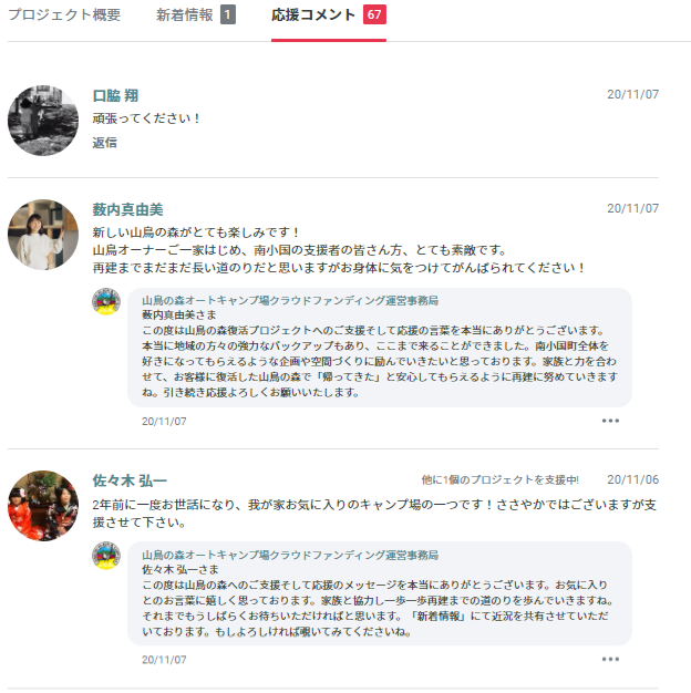 このたびは、山鳥の森キャンプ場復活プロジェクトのSNSシェアやご寄付、誠にありがとうございます!
