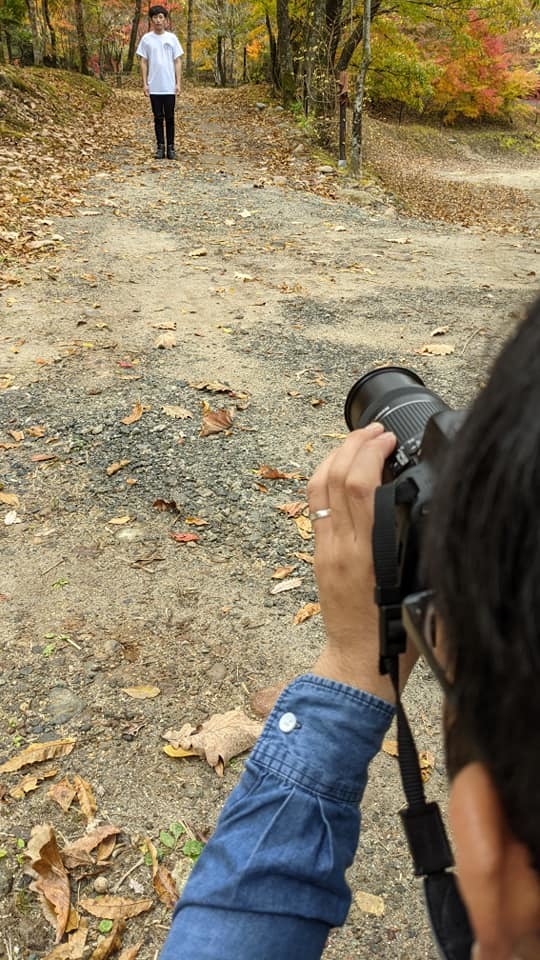 写真は、クラウドファンディングのプロジェクト概要で使用している、Tシャツの着用イメージを撮影したときの風景です。