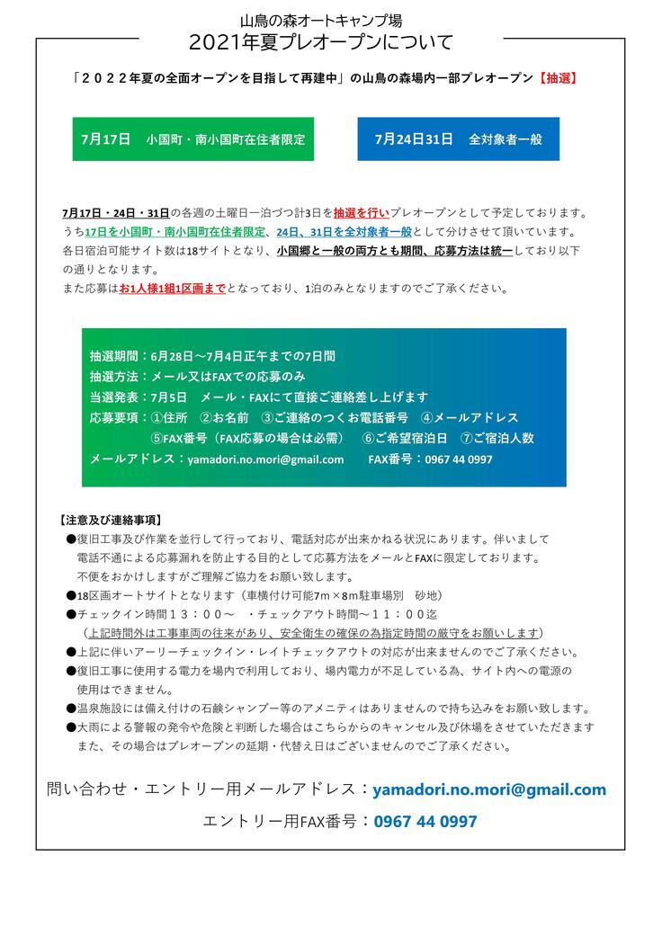 また、宿泊可能サイトは【オートサイト18区画のみ】となります。一日も早い