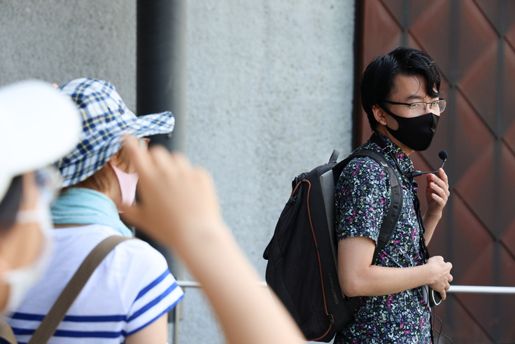 まずは黒田から「演劇」ってなにをすること?「演出」って「妄想」することなんじゃない?などなどこれからの散歩のウォーミングアップになるようなお話や、劇場外で演劇を上演することの多いゲッコーパレードの作品についてなどお話ししました。
