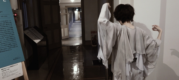 第二部では展示スペースに入る前のエントランス、回廊部分でもパフォーマンスが行われていました。