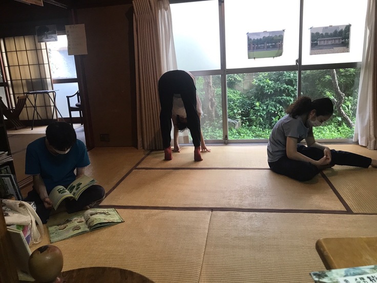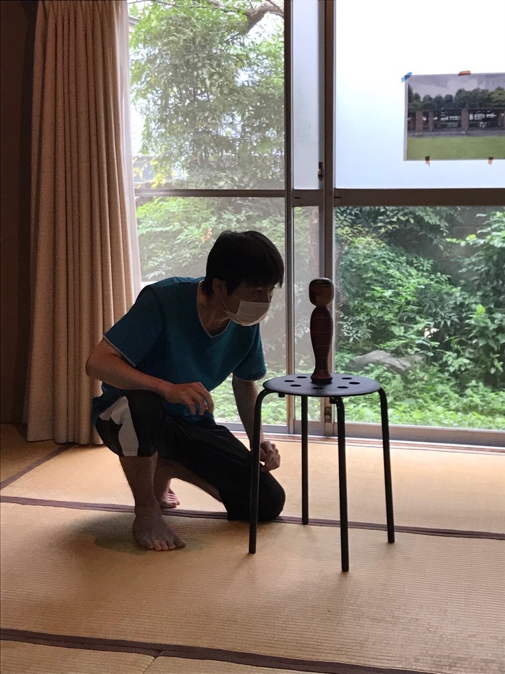 この日は、身体を丁寧に起こすマッサージやストレッチから始まり、ただただ静止してみたり、加藤家に「居て」みたりしました。普段私は、舞台上では「見られる」特別な緊張状態に持っていかなければいけない、と思い込んでいたので、それとは全く違う身体的状態で舞台に立つ人がいるのだという驚きと共に、新たな選択肢を与えられたような気がして、とても新鮮で楽しい経験でした。