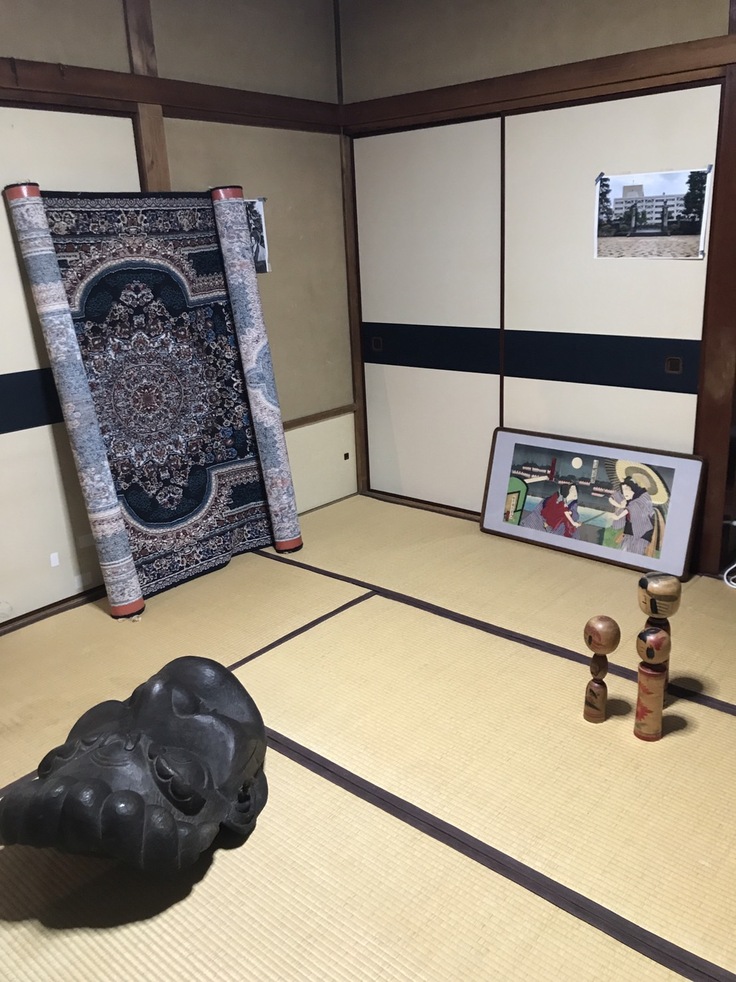 稽古の終盤になってくると、今度は加藤家を展示会場に見立て、様々な展示物を置いて第二部の稽古を進めました。第二部は初め、出演者と演出家がそれぞれ一人芝居を作るというようなスタイルで創作していたので、お互いの途中経過を話して共有したり、実際にやってみて感想を言い合ったりしてブラッシュアップしていきました。