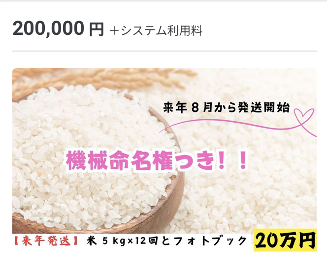 ⚫︎購入する機械の命名権が付いたプレミアムリターン もちろんお米もついてます!