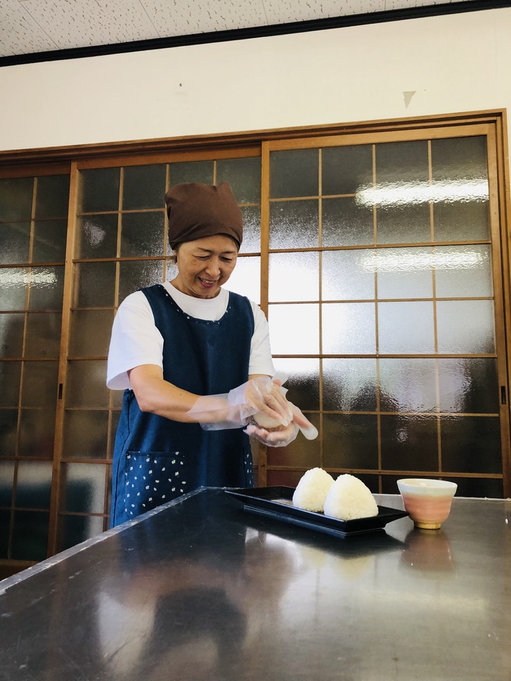 お昼時に、集落の加工場を訪ねると、🍙をつくるねおねぇーちゃんの姿が。