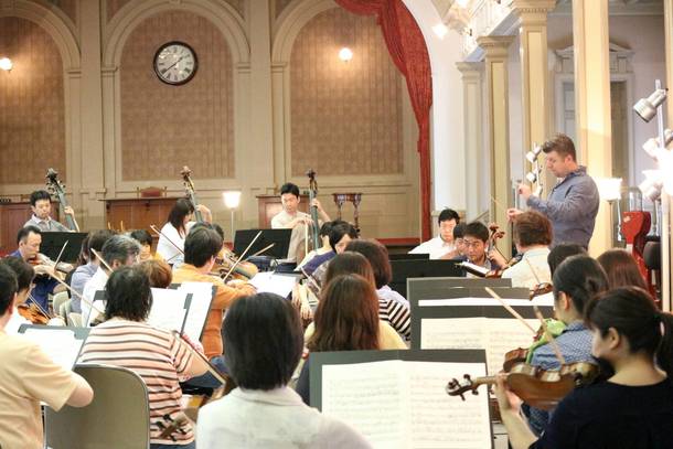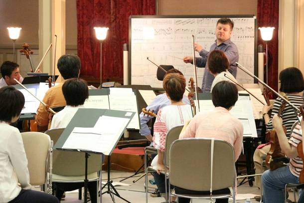 曲のとらえ方について、難解な箇所もあるようで、バボラーク氏が解説しています。楽団員も真剣に聞き入っております!