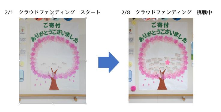 またご支援を頂くとともに温かいメッセージも沢山届いており、院内に掲示している桜🌸の木も皆様のメッセージで花が咲きつつあります。本当に励みになります!!
