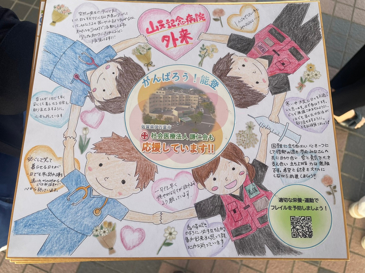 今回は病院スタッフみんなで記載した寄せ書きを託しました。