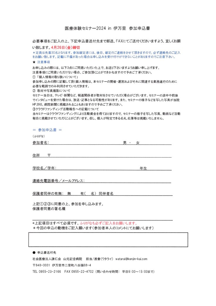 さて、本日は「医療体験セミナー2024in伊万里」参加者募集開始となりましたのでご報告致します✨