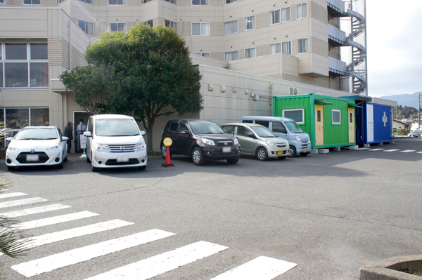 車での来院が多い土地柄のため、発熱外来前の駐車スペースはカオスの状態に...💦