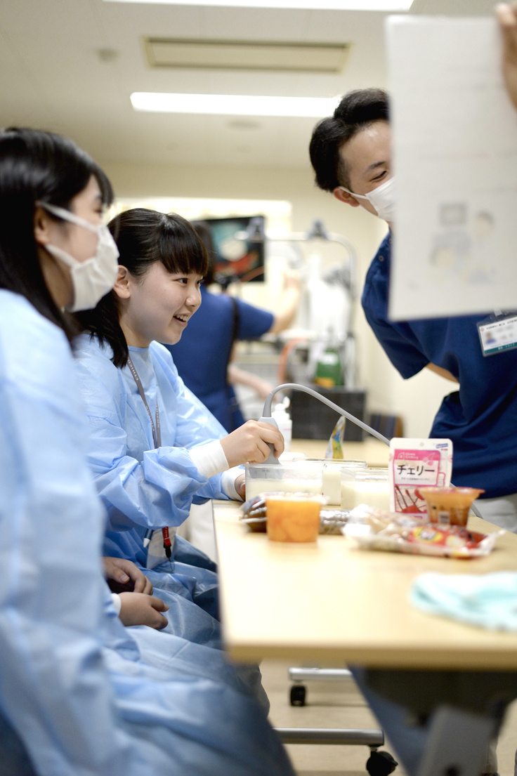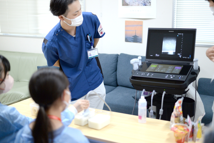 『エコー体験で、さくらんぼ、ちくわやみかんなどたくさんなものを見ることが出来たので、エコーで医療に関わりたいなと思いました。』