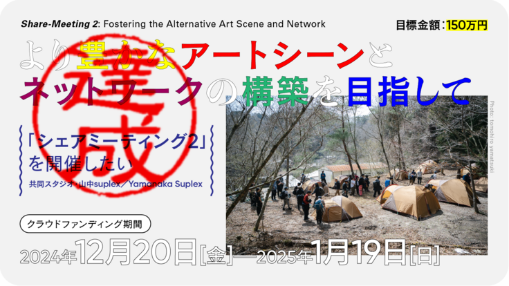 まだ構想段階ではありますが、3回目となる「シェアミーティング3」はアジア全域に目を向けた国際的なミーティングを計画しております。各地でインディペンデントなアートシーンを醸成している活動や団体と出会え、そこから独自のつながりや関係性を生み出せるような機会をつくること。その空間をきっかけに湧き上げる好奇心や、偶発的な対話、共感の連鎖が、再びアートシーン全体を健やかに育てるための肥料や栄養になります。その実施資金の一部として、どうかより多くの応援をいただけますと幸いです。