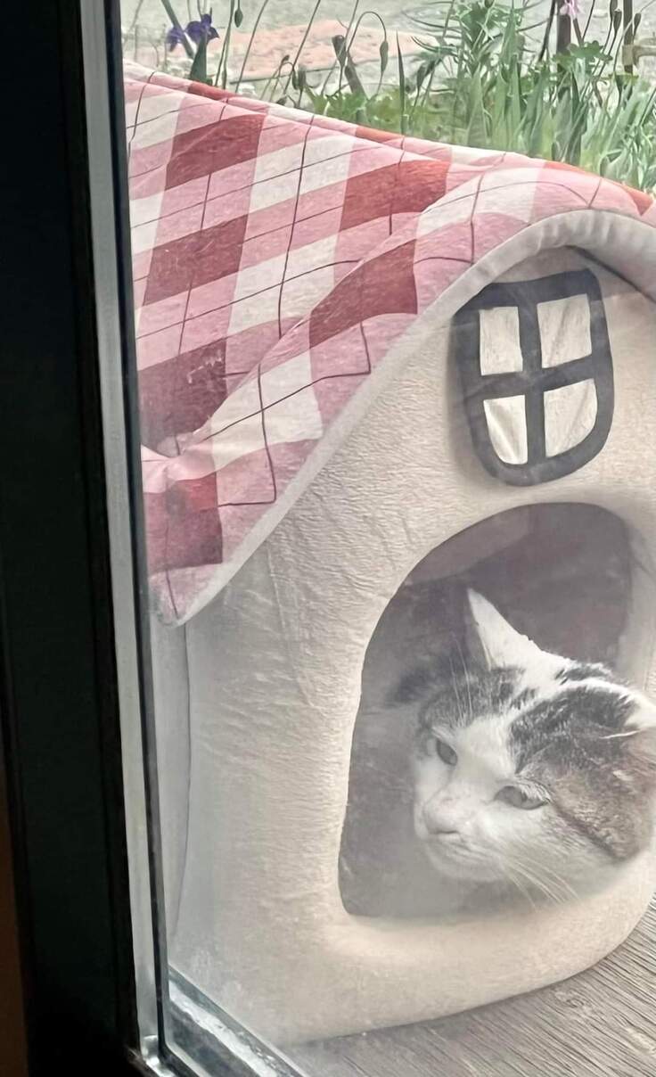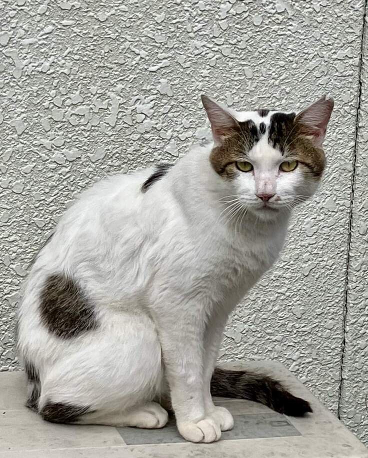 ウシくんは美味しいごはんをたっぷりもらってハウスも作ってもらってえさやりさんの庭で仲間猫たちと穏やかに暮らしています。