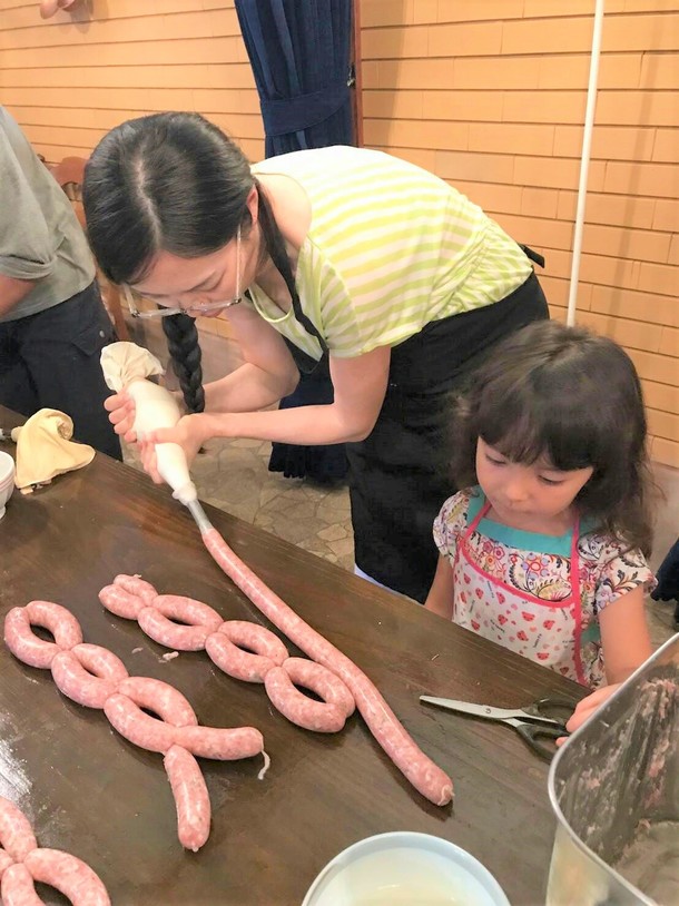 出来上がったソーセージはランチメニューに加えて食べていただくこともできますし、お持ち帰りもできます。お子さんとご一緒に、また仲間同士でお楽しみください。