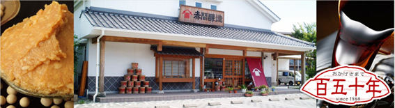 赤間醸造(株)は明治元年創業されました。創業当時の名称は磯部商店と言います。約135年間この名称できましたので、地域の方には磯部商店の方がなじみがあるかと思います。 創業当時は醤油専業の醸造業、その後味噌醸造も加わり現在に至ります。平成14年4月、工場移転に伴い、下関市の旧い地名である「赤間が関」からとって赤間醸造株式会社と社名変更、弊社の醸造の原点であり、現実に使用している創業以来の大杉樽をシンボルマークに据えました。