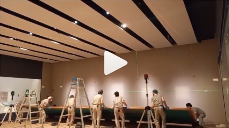 現在、当館公式SNSでは、展示替えの一コマを撮影した動画を公開中。東山魁夷が描いた幅約9メートルの大画面作品をいよいよ壁面に設置、という展示のクライマックスをご覧いただけます!