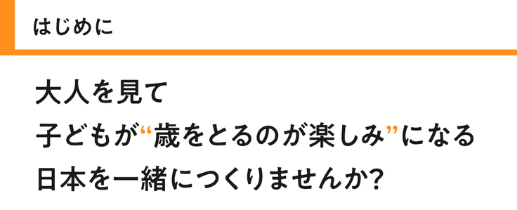 子どもの自殺率は年々上がり続け、世界に比べても若者が幸福実感をもてない日本。そんな現状を変えたい。実現するのは政治家でも、ひとりのずば抜けた救世主でもない。日本の99.7%※を占める中小企業だからできることはある!このプロジェクトは諦めが悪く、希望を捨てないすべてのどろくさい中小企業、お母さん、お父さん、大人たちが参加できるプロジェクトです。