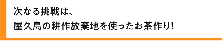 この茶畑を復活させ、屋久島古来の茶作りを復興しよう。農家さんと一緒に取り組むことで、耕作放棄地もよみがえらせることができるかもしれない。そしてこの屋久島でのプロジェクトが成功できれば、きっと日本中でも農業X中小企業で日本を復興する取り組みを広げられるはずだ。こうして屋久島天謡茶プロジェクトがスタートしたのです。