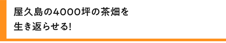 わたしたちは、屋久島にある約4000坪の耕作放棄地と化している茶畑を元に戻し、屋久島の薬草とブレンドした健康によい有機のお茶作りを目指します。本プロジェクトでは、茶畑をよみがえらせるべく、その活動資金のご支援をお願いしております。