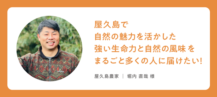 それならば、この屋久島で自然の魅力を活かした生命力の強いものを育てて、自然の風味をまるごと多くの人に届けられれば、人や地域、そして日本のためにもなるのではないかと考えました。