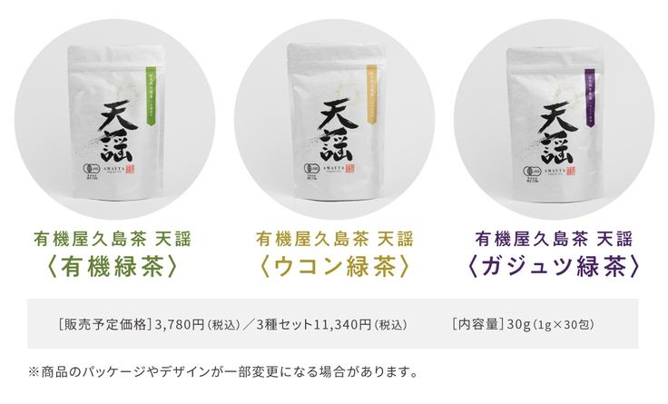 ミネラル豊富な屋久島の地で育った有機JAS天謡茶3種セット1箱、感謝のお手紙とともにお届けします。