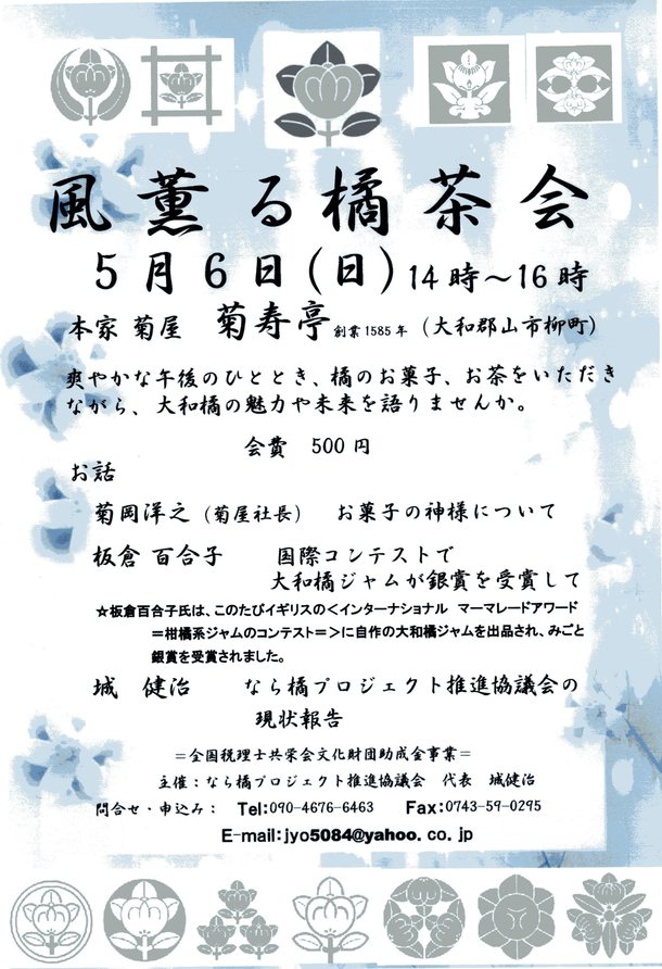 去る5月6日 本家菊屋 菊寿亭にて、なら橘プロジェクト推進協議会主催、