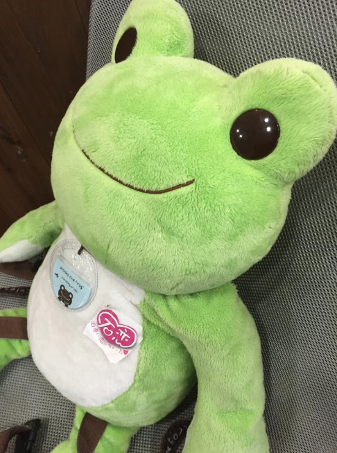 リュックの中身は「防災豆知識」には親子で「防災・減災」について考える情報が数多く記されています。その他、リュックの中には家族で決めた防災グッズを入れることができ、『カエル』と『帰る』を掛け合わせた製品となっています。今回は大人サイズ(全長70センチ)