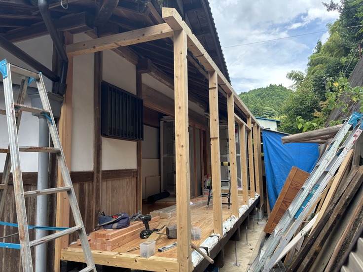 只今、1階にシャワー室とトイレをつくるための増床工事を手掛けていただいているところです。
