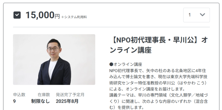 《リターン紹介》【NPO初代理事長・早川公】オンライン講座&オーダーメイド講座