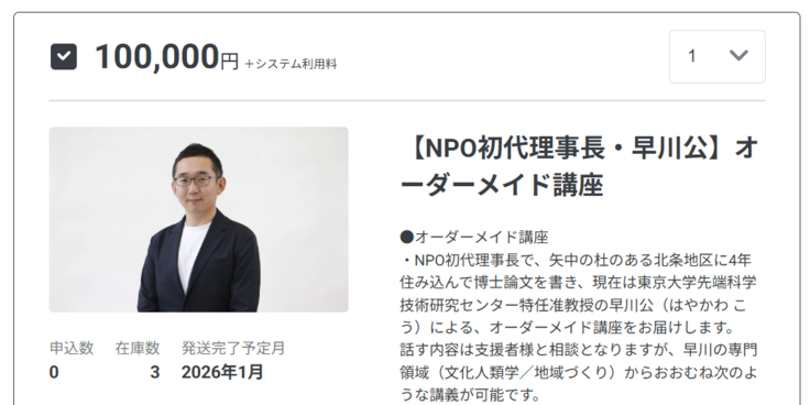 本日は、リターンとして設定している【NPO初代理事長・早川公】オンライン講座&オーダーメイド講座をご紹介させていただきます。
