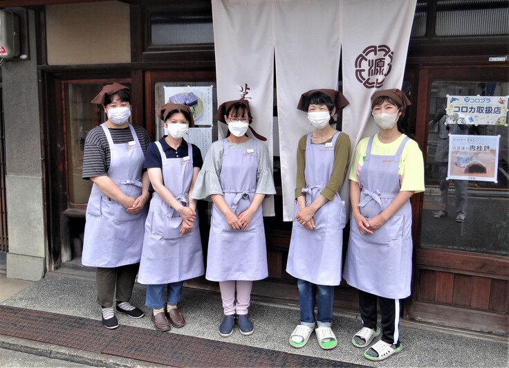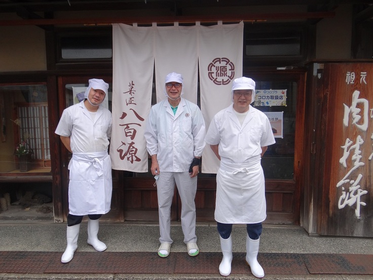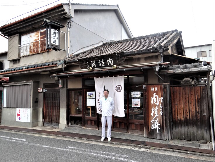 「こちらが全国でも有名な元祖肉桂餅の八百源来弘堂さんです」