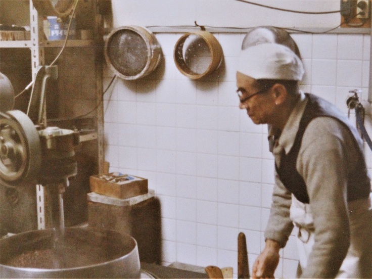5代目の父が病弱であったため、大学を出てすぐに家業の職人に仕事に従事し 肉桂餅の製法は4代目当主祖父に教わりました。まるで父である5代目の代が抜けてしまったような感じで、しんどい、厳しい修業時代でございました。祖父は日本陸軍の軍人で指導は厳しいものでした。青春時代を、職人の厳しい修行で過ごしたわけでございます。それを、乗り越えて、修行も達成、お客様に大変満足いただける肉桂餅(にっきもち)を作れるようになりました。