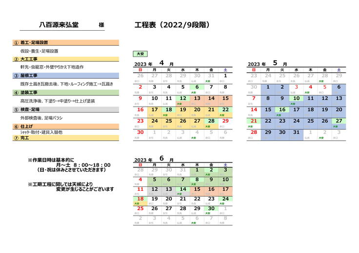 令和5年4月より、老朽化した八百源来弘堂本店の店舗の外観を修復する計画を進めております。