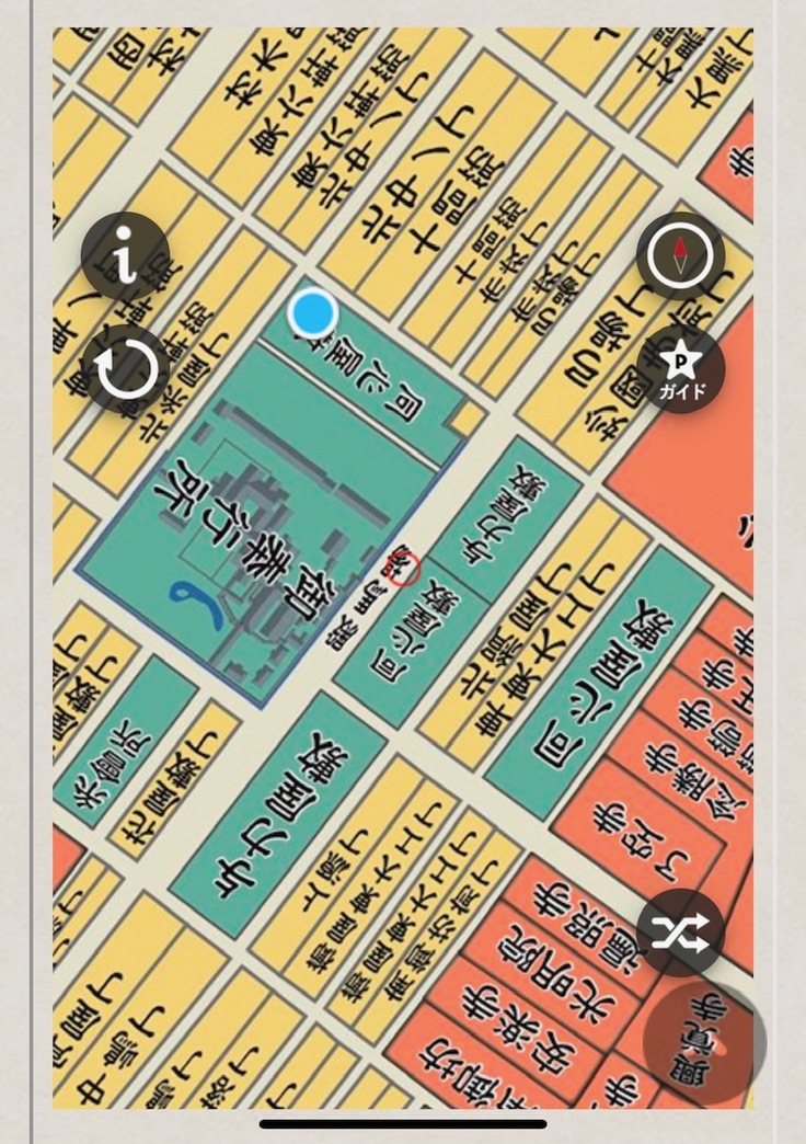水色の〇マークが八百源来弘堂本店のの位置です。