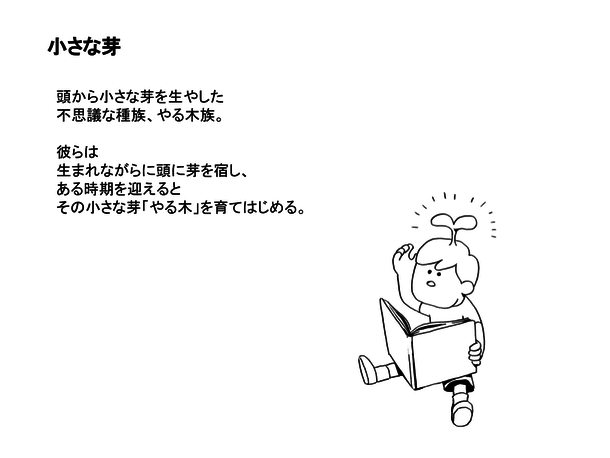 そして、たどり着いたのが、不思議な種族「やる木族」です。